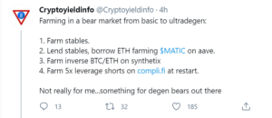 LP / Liquidity provider – these are exchanges where you can buy or sell crypto. You can get LP tokens when you, as an investor, provide liquidity to exchanges. These can then used to generate yield.
