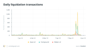 Aave, Compound, and Maker are DeFi protocols that account for nearly 50% of all total value locked. According to DappRadar, they saw liquidations hitting a record of over $1.17 billion worth of collateral. Although these numbers are far smaller than what was seen in the financial crisis, they represent a significant proportion of the total assets that were locked in these protocols.